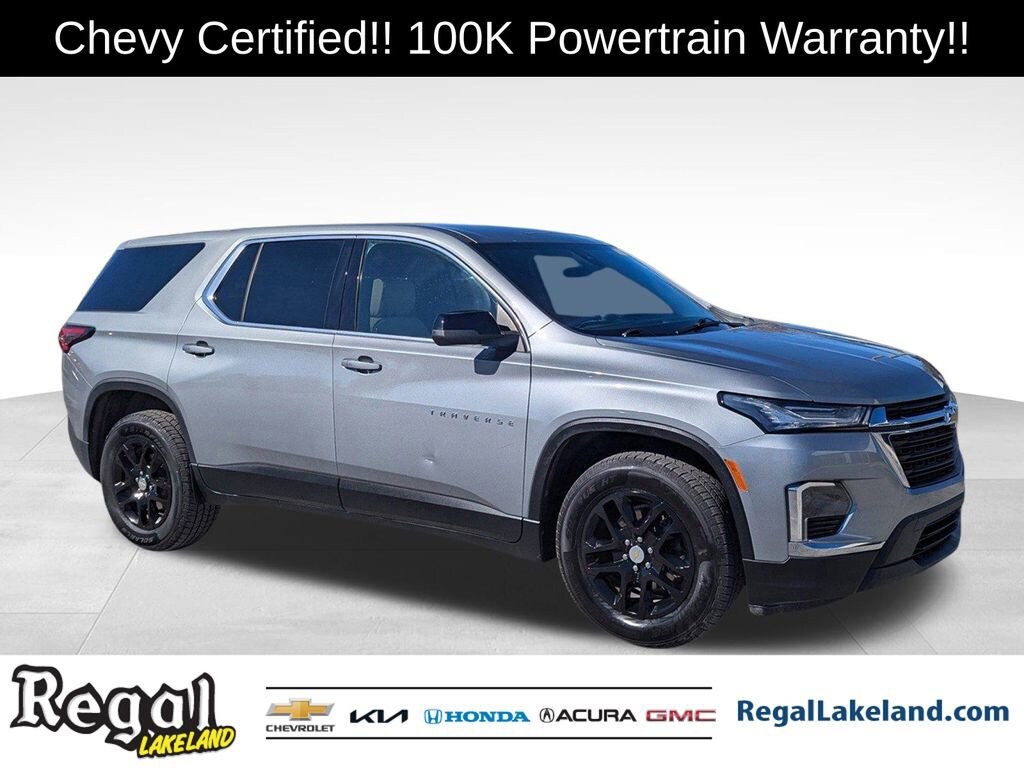 GM CERTIFIED, CERTIFIED BY CARFAX- NO ACCIDENTS AND ONE OWNER!.Chevrolet Certified Pre-Owned Details:* Vehicle History* Limited Warranty: 12 Month/12,000 Mile (whichever comes first) from certified purchase date* Transferable Warranty* Roadside Assistance* Warranty Deductible: $0* 172 Point Inspection* Powertrain Limited Warranty: 72 Month/100,000 Mile (whichever comes first) from original in-service date* 24 months/24,000 miles (whichever comes first) Certified Pre-Owned Scheduled Maintenance Plan and 3 days/150 miles (whichever comes first) Vehicle Exchange Program. SiriusXM 3-month trial subscription.2023 Chevrolet Traverse LS Certified. Sterling Gray Metallic FWD 9-Speed Automatic 3.6L V6 SIDI VVT18/27 City/Highway MPGCome test drive this vehicle @ our Regal Honda Acura GMC location 2615 Lakeland Hills Blvd Lakeland fl. 33805 (Beside Detroit Tiger Stadium). To Schedule an appointment or for additional info call (863) 204-4505 / (863) 265-1272).