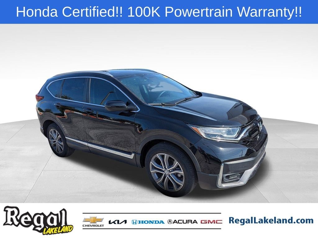 CERTIFIED BY CARFAX- NO ACCIDENTS AND ONE OWNER!, AWD.Certification Program Details: 150-point mechanical and appearance inspection 7-year/100,000-mile Powertrain warranty from the vehicle's original in-service date 12 months/12,000 miles (whichever comes first) non-powertrain warranty from the original warranty expiration date or, if the original warranty has expired, from the Honda Certified Used Cars purchase date. $0 deductible CARFAX® Vehicle History ReportTM Warranty is transferable Roadside Assistance XM Satellite Radio 3 trial months of service Price does not include $1495.00 Certification2022 Honda CR-V Touring Certified. Black AWD CVT 1.5L I4 DOHC 16V27/32 City/Highway MPG Priced below KBB Fair Purchase Price!Come test drive this vehicle @ our Regal Honda Acura GMC location 2615 Lakeland Hills Blvd Lakeland fl. 33805 (Beside Detroit Tiger Stadium). To Schedule an appointment or for additional info call (863) 204-4505 / (863) 265-1272).