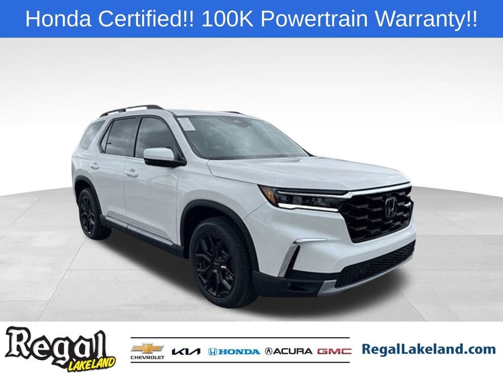 2025 Honda Pilot Touring+ Certified. Platinum White Pearl FWD 10-Speed Automatic 3.5L V6 DOHC 24V
