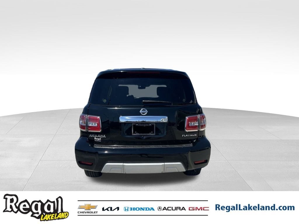 SERVICE RECORDS AVAILABLE!, BLUETOOTH HANDS-FREE CALLING!, HEATED LEATHER SEATS!.2018 Nissan Armada Platinum Super Black RWD 7-Speed Automatic 5.6L V8 DOHC 32V EndurancePriced below KBB Fair Purchase Price!Come test drive this vehicle @ our Regal Honda Acura GMC location 2615 Lakeland Hills Blvd Lakeland fl. 33805 (Beside Detroit Tiger Stadium). To Schedule an appointment or for additional info call (863) 204-4505 / (863) 265-1272).